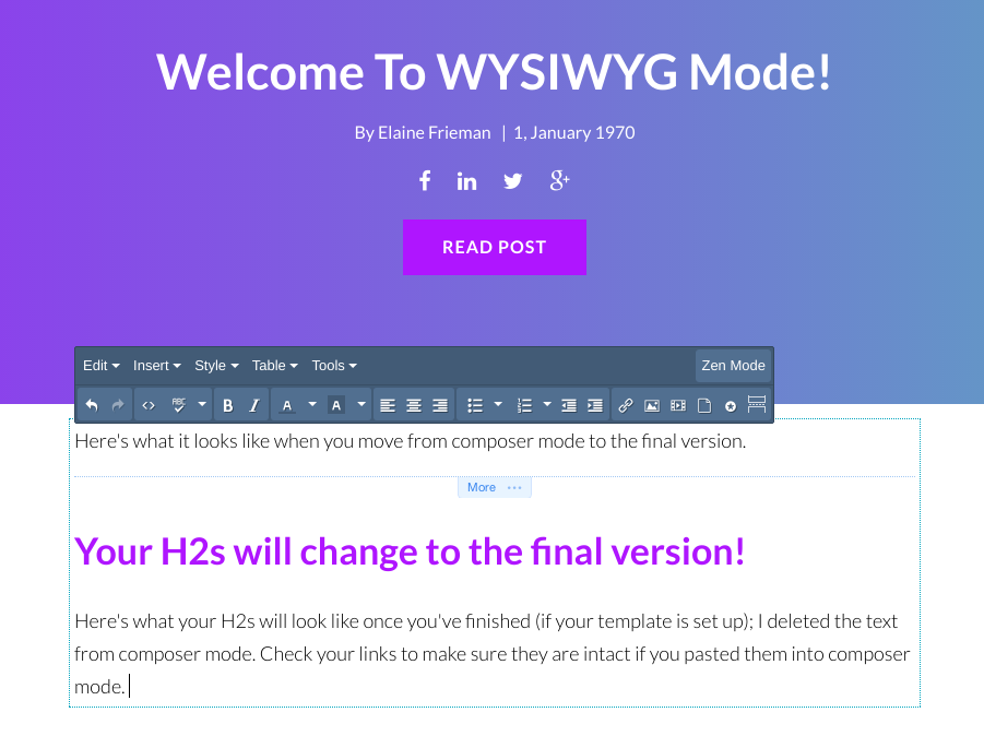 Clicking next will take you to the screen above to start editing. The next page will be the WYSIWYG editor.