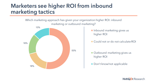 53% of the companies interviewed said that inbound tactics help them to achieve higher ROI, compared to only 16% from outbound techniques. It's shown that small to large businesses have seen an increase in their ROI with inbound marketing.