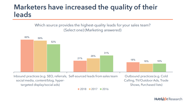 According to marketers, inbound practices generate 60% of high-quality leads, whereas outbound practices only produce 18%.