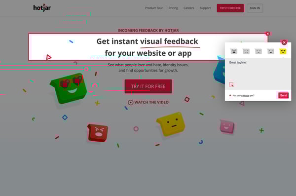 Linking in with the previous point, it’s vital that you’re getting the right type of feedback from users. Without this, your team might be wasting valuable time making improvements to an area where no changes are needed in the first place. With Hotjar, the Incoming Feedback feature gets you instant and visual feedback from visitors.