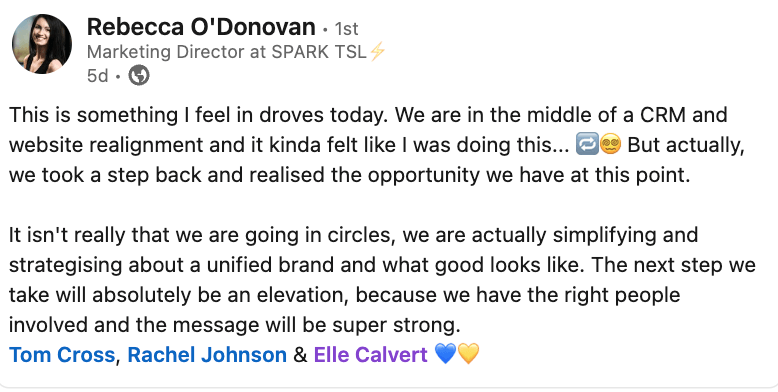 As always, there is further work to be done, but this is well underway and will only help to make the messaging for all areas of their business clearer.
