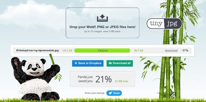 Når du har skaleret billedet ned til den rette størrelse og gemt billedet i det korrekte format, er der endnu en ting, du kan gøre, for at mindske størrelsen yderligere. Du kan komprimere billedet med online værktøjer, der reducerer størrelsen uden at forringe kvaliteten.