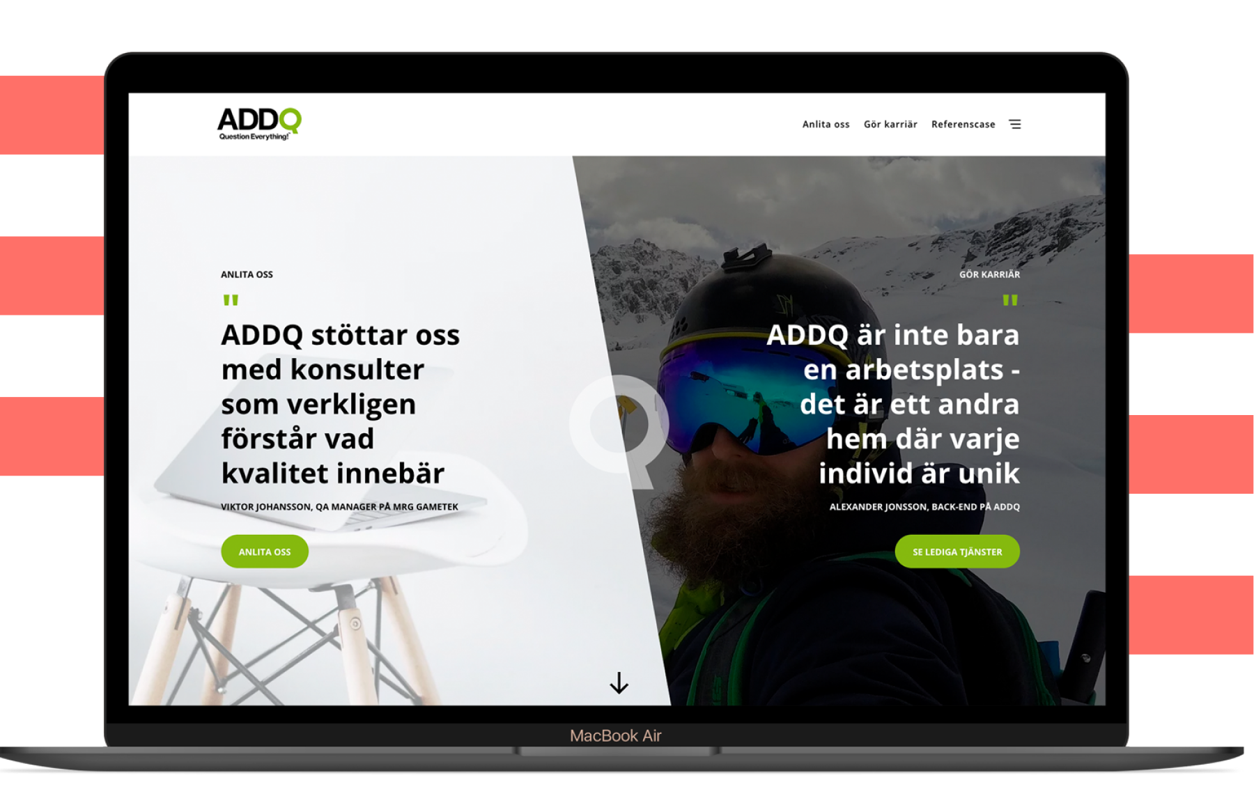 En av utmaningarna i arbetet med webben var att allt innehåll skulle vara kvalitetssäkrat enligt samma standard som ADDQ använder för sina kunder. Det innebar till exempel att designelement som texter och knappar behövde vara tydliga och ha bra läsbarhet på alla skärmar. Det var även viktigt att sajten skulle vara enkel att navigera och hitta i, utan att för den sakens skull bli tråkig. Även kodarbetet (back-end och front-end) kvalitetsäkrades enligt ADDQs standard.